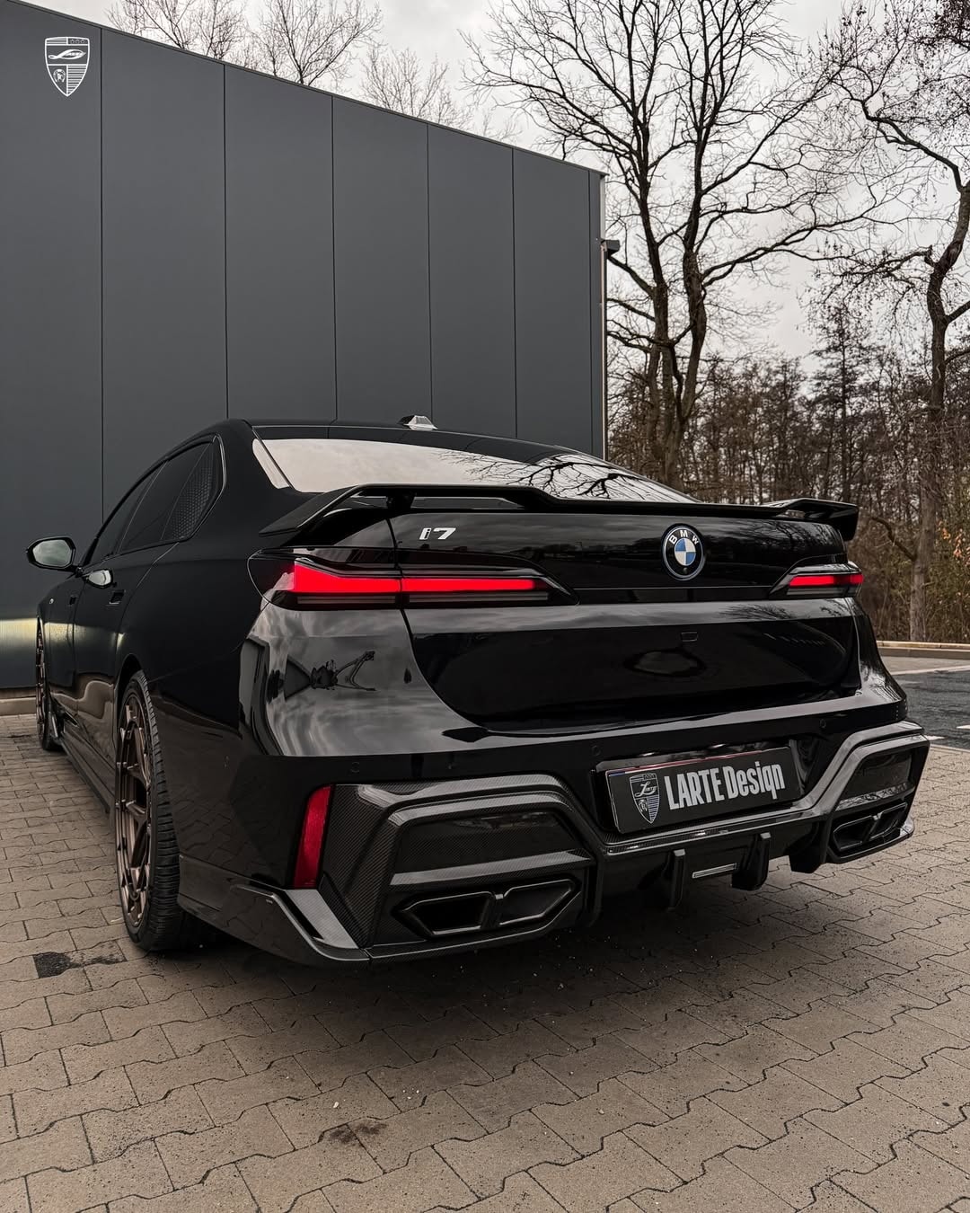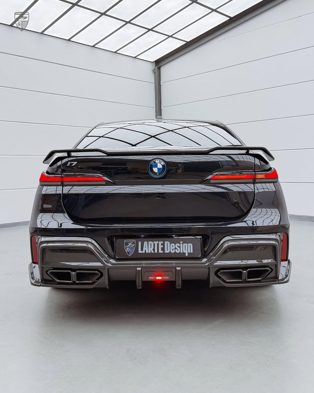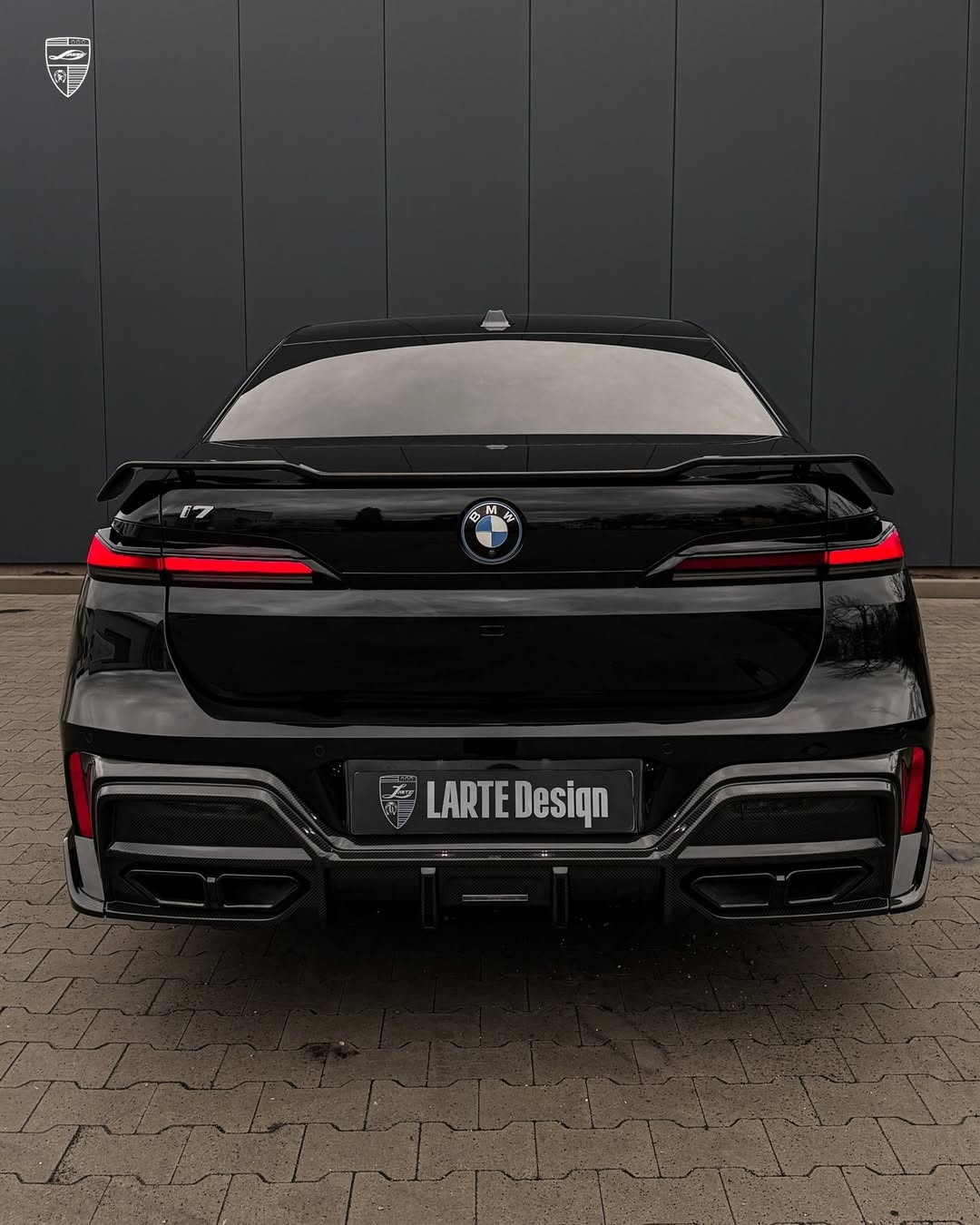 BMW’s current i7 has already become a frequent subject for aftermarket reinterpretations, even before the updated version of the 7 Series officially arrives. One of the latest examples comes from Larte Design, and this one does not exactly aim for restraint. The electric sedan shown in fresh social media images wears a glossy black finish, new aero parts, and a rear treatment that immediately raises eyebrows: exhaust-style outlets on a car that, of course, has no exhaust system to begin with.